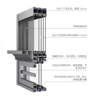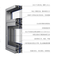 产品配置 TO CONFIGURE 边框宽度/Frame:115mm 型材壁厚 /Wall thickness:2.0mm 胶条配置/Rubberstrip:采用海达(EPDM) 复合胶条玻璃配置 /Glass:信义玻璃 5+20A+5 隔热保温系统 THERMALINSULATION SYSTEM 隔热条 /nsulation strip:国标 PA66GF25 隔热条热导率/Thermal conductivity:0.30W/(m.k) 五金开启系统 HARDWARE OPENING SYSTEM 开启系统/Open thesystem:RUANS(瑞纳斯)五金承重系统/Load bearingsystem:承重>60KG